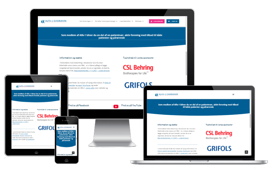 Alfa-1 havde en hjemmeside der var bygget i WordPress med page builderen Divi – desværre oplevede de at Divi har meget svær for dem at arbejde med når tekster, billeder mm skulle opdateres. De ønskede derfor at få opbygget deres hjemmeside forfra, men med Elementor som er meget mere intuitiv at arbejde med … og her på siden ser i resultatet.