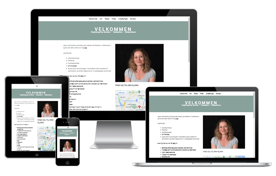 Denne hjemmeside er designet i WordPress med Elementor Pro til psykolog Ea Ancher – Vesterbro, København.